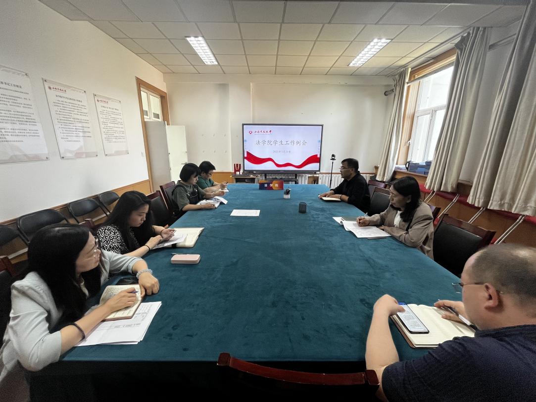 5月21日上午,法学院召开学生工作例会,会议就我校近期学生工作、审核评估工作等相关会议精神进行传达。院党委书记罗青,党委副书记高海出席会议,辅导员参加会议。
